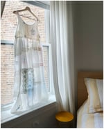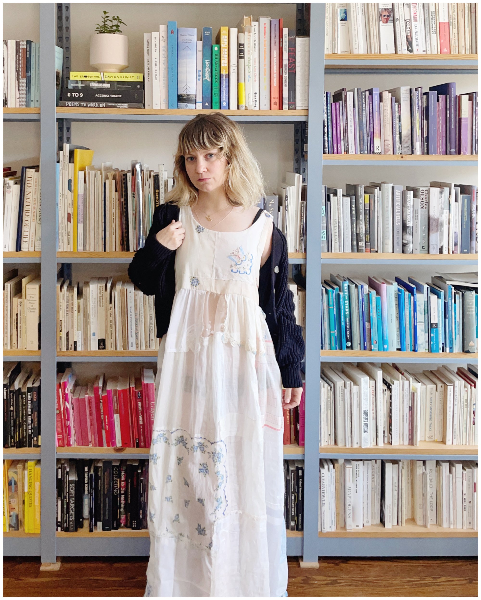 Dry your eyes on this dream dress, constructed from dozens of vintage hankies. It’s easy to throw on and dress up or down. The bust is fully lined, the skirt is semi- sheer.